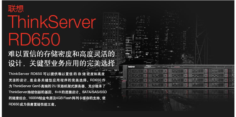 产品概要: ThinkServer RD650可以提供难以置信的存储密度和高度灵活的设计,是业务关键型应用程序的完美选择