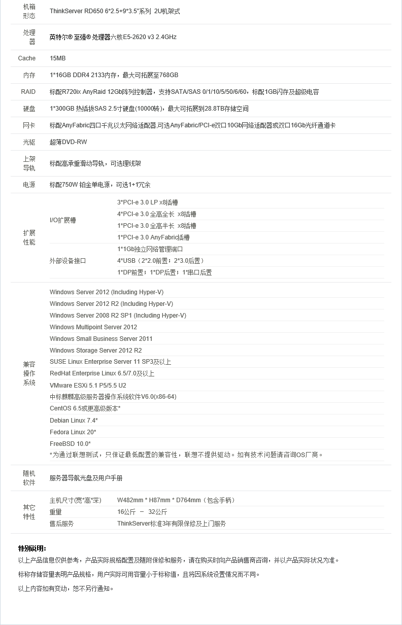 产品名称: ThinkServer RD650 S2620v3 R720ix
